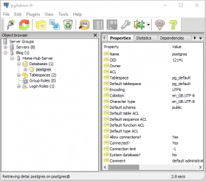 PostgreSQL is described as the world’s most advanced open-source database, and underpins a number of features of the home hub. It runs quite happily on the raspberry pi.