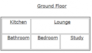 To achieve this each zone has X, Y and Z co-ordinates, with Z representing the floor number. In addition, each zone has Rowspan and Colspan values which enable the size of the zone to be adjusted relative to neighbouring zones. Anyone familiar with html table construction will quickly be able to model the rooms of their house (which is how the plan is drawn!). If not, then a drawing on squared paper will help. Here is an example: